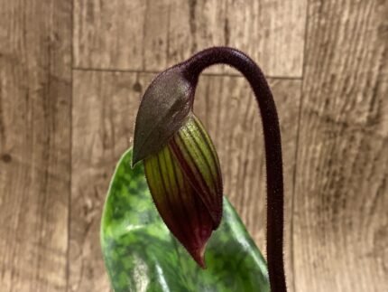 In Spike – Paph. Hilo Sweet Bean ‘Olive’ x Paph. Hualalai ‘Dark.Stripes’ (3.5” pot)