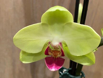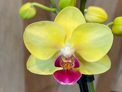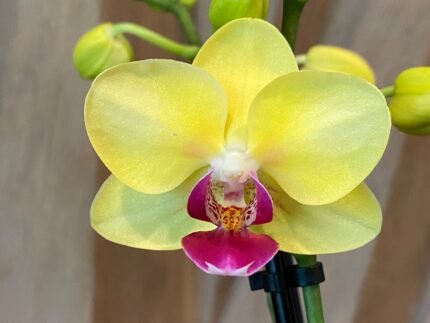 Phalaenopsis Large I-Hsin Blonde Beauty (yellow with purple lip) 2 spikes (4.5″ pot)