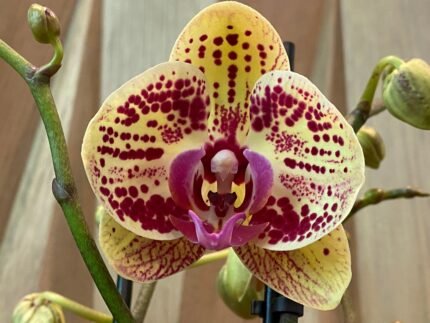 Phalaenopsis Fortune Salltzman ‘Maple Bridge’ In Spikes 2 PLANTS PER POT (4.5″ pot)