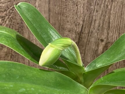 IN BUD Paph. Icy Icy Wind × Golden Emperor) (3.5” Pot)