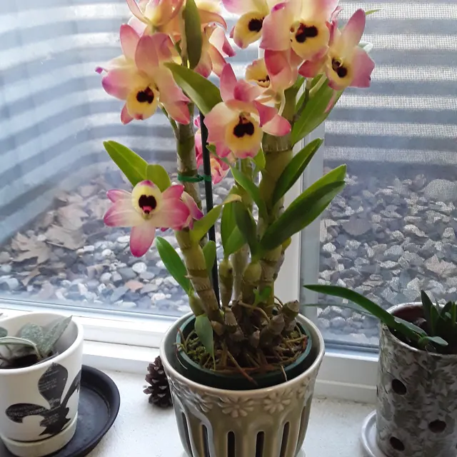 Beautiful orchid. Arrived full of flowers. There was no damage to the plant. It was very well packed.