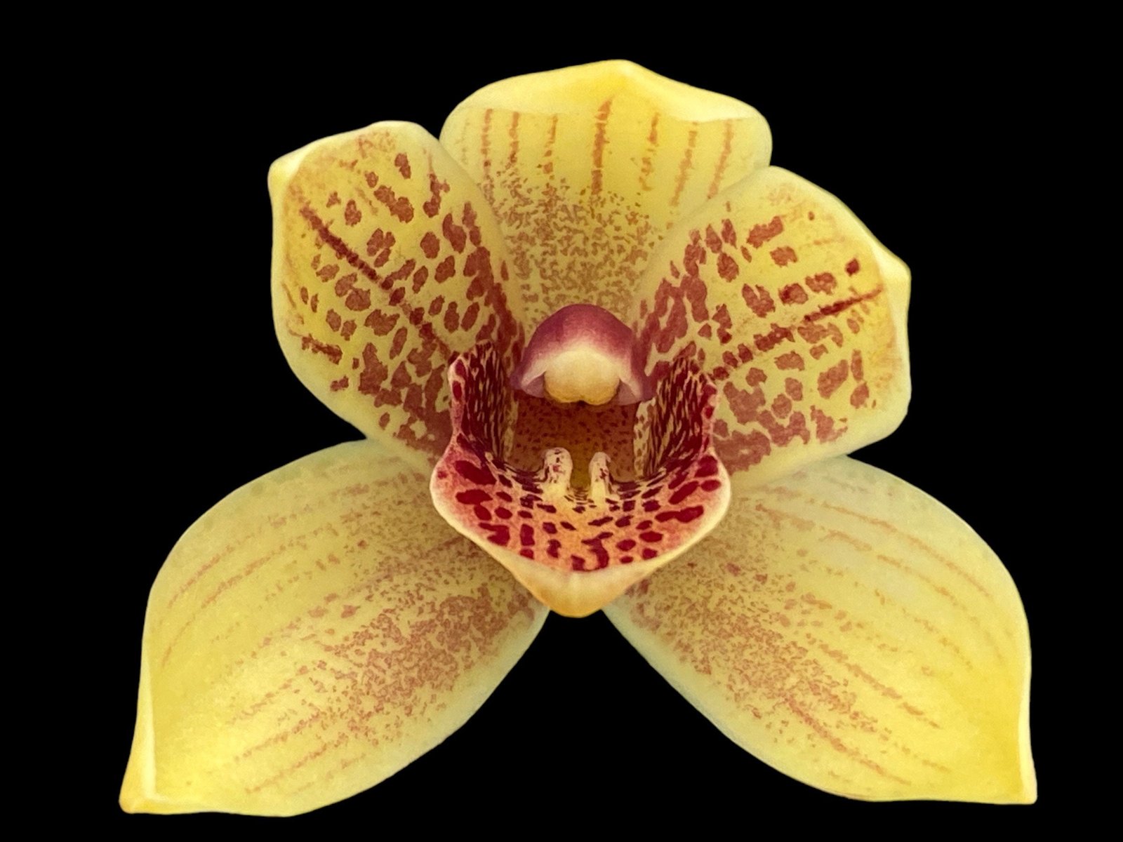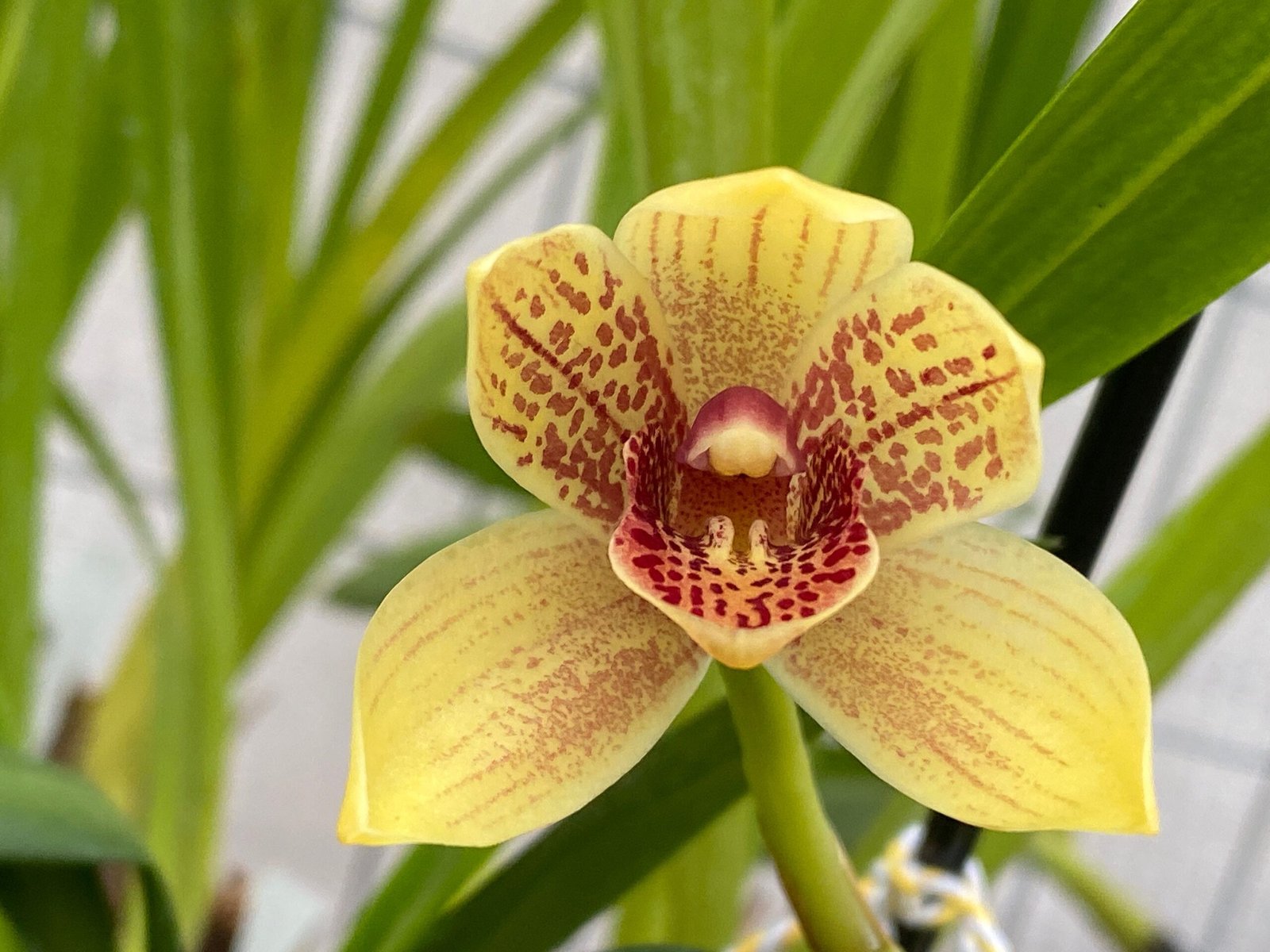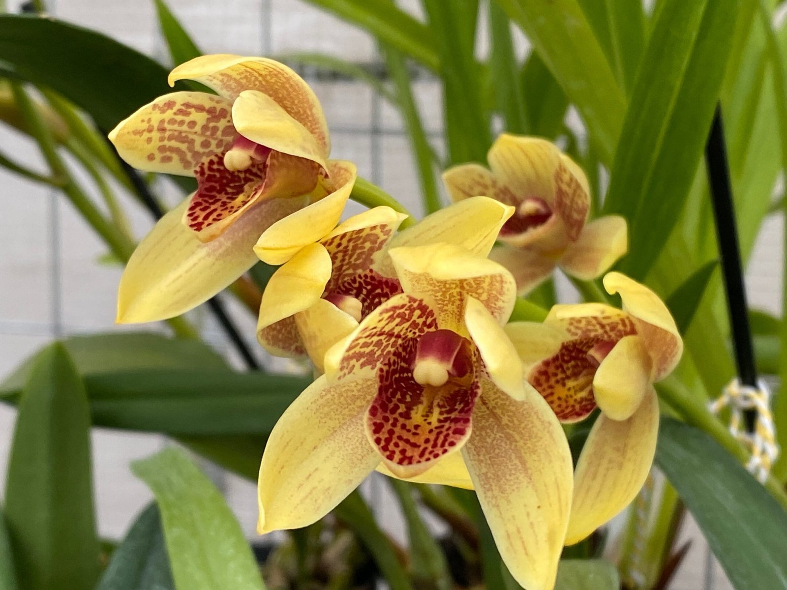 This cymbidium is a heat tolerant hybrid. The pot size is often mentioned in the listing title.