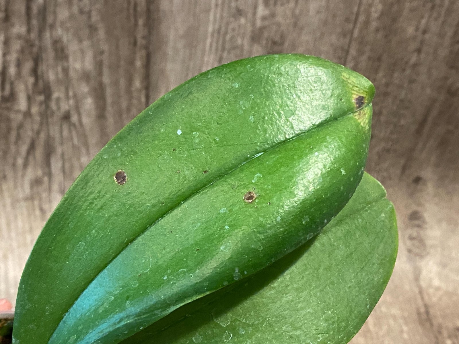Please note: the plant is healthy but one young leaf has suffer the cold damage during winter, other than that, the plant is healthy.