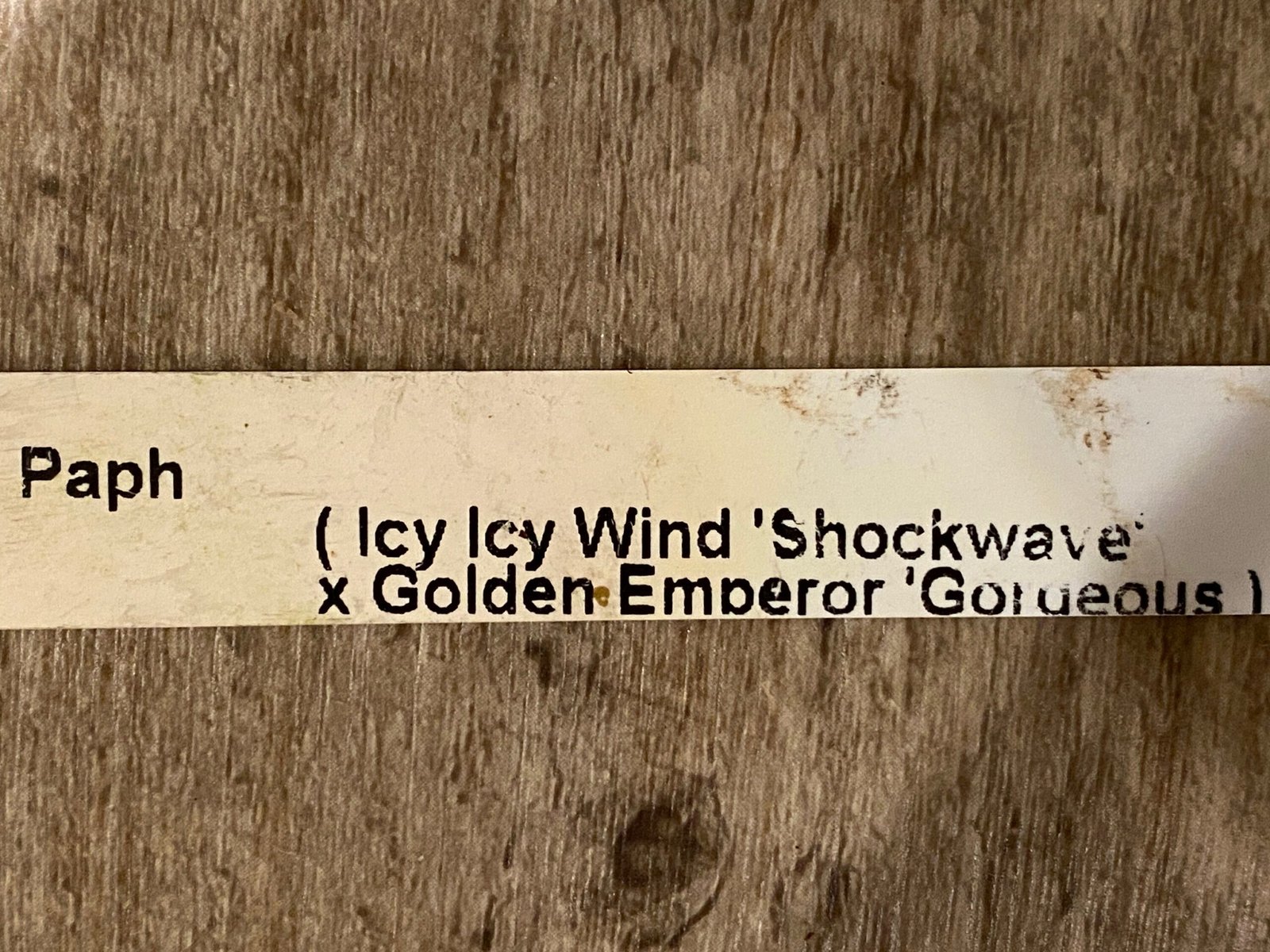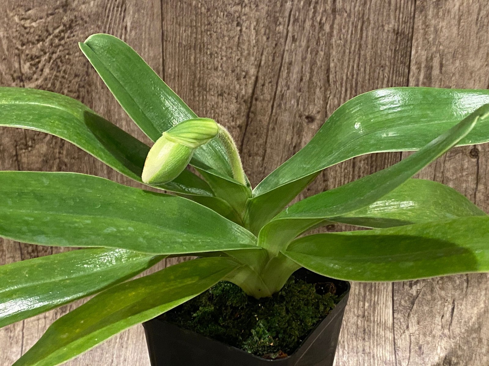 IN BUD Paph. Icy Icy Wind × Golden Emperor) (3.5” Pot)