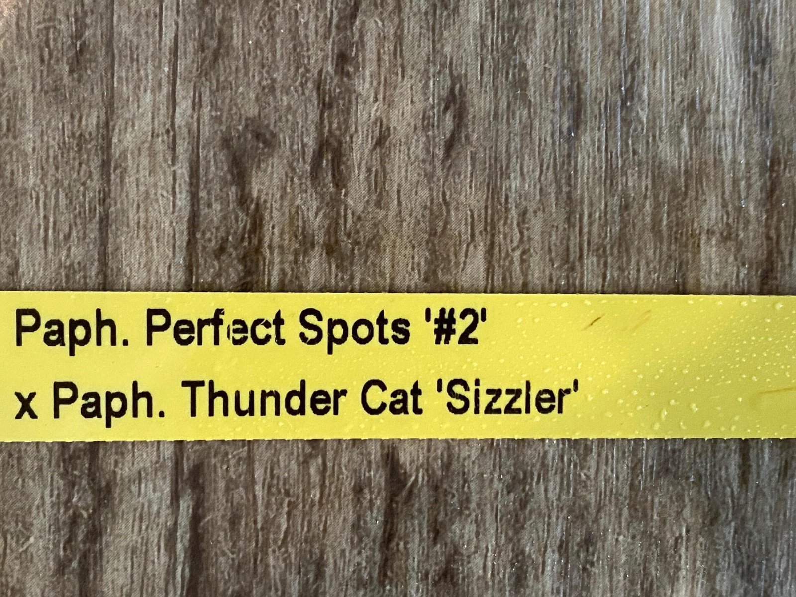 Be the first to review “In Spike Paph. Perfect Spots ‘#2’ x Paph. Thunder Cat ‘Sizzler’ (3.5” pot)” Cancel reply