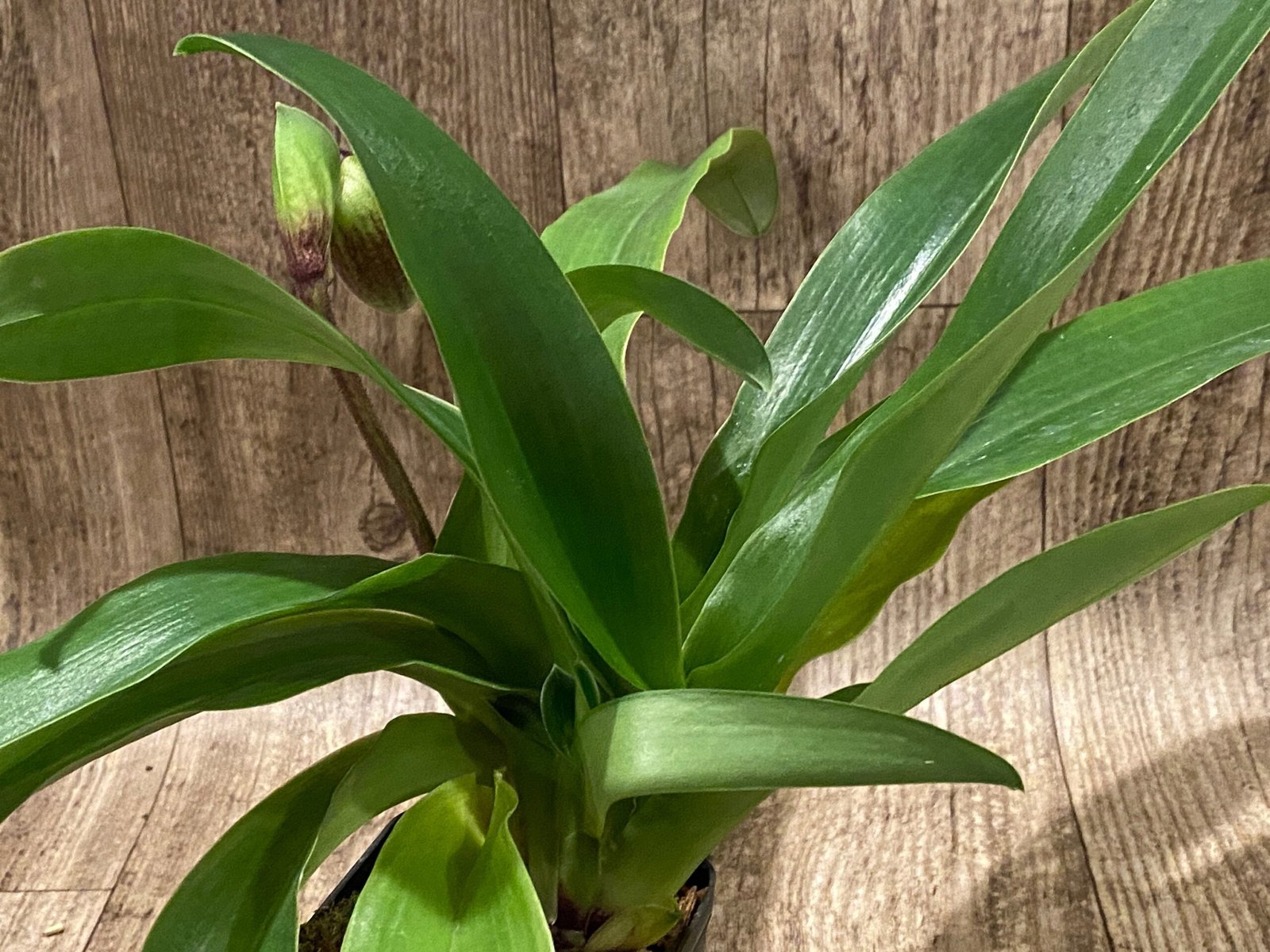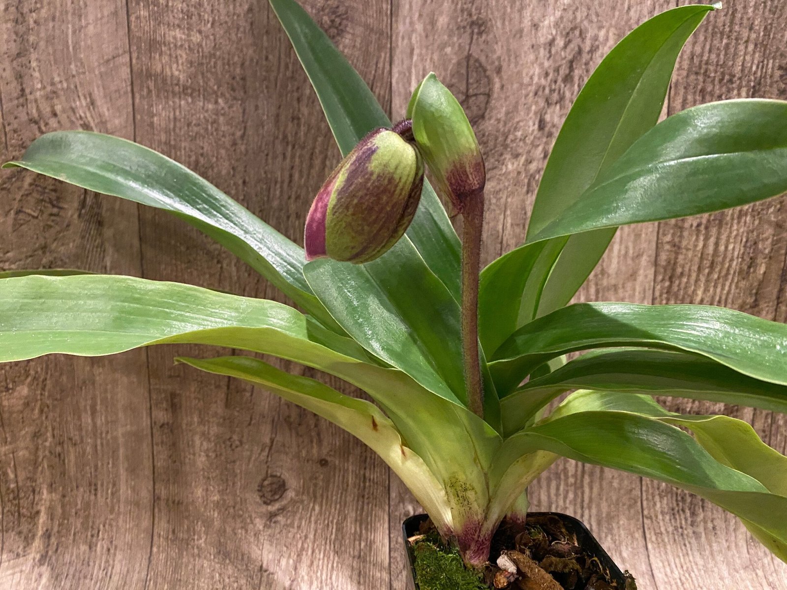 In Spike Paph. Provocation ‘Boysemberry’ x Paph. Alphahill ‘Big Wow’ SBM/JOGA + 2 New Growths (3.5” Pot)