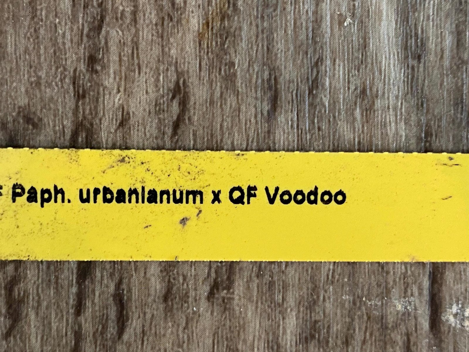 In Spike Paph. QF Babylon #1 (urbanianum x QF Voodoo) (3.5” pot)