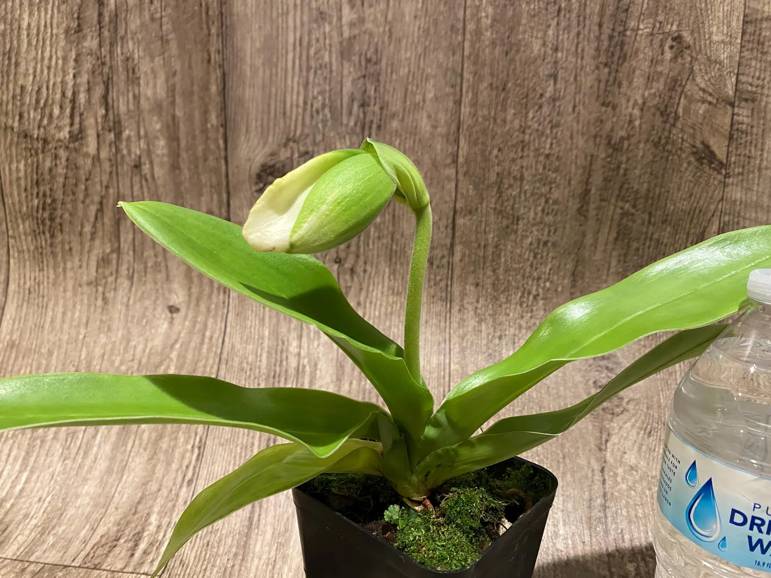 In Spike Paph. Sorcerer’s Prime ‘Giant Dorsal × Paph. Stone Lovely ‘Green Angel’ (3.5” Pot)