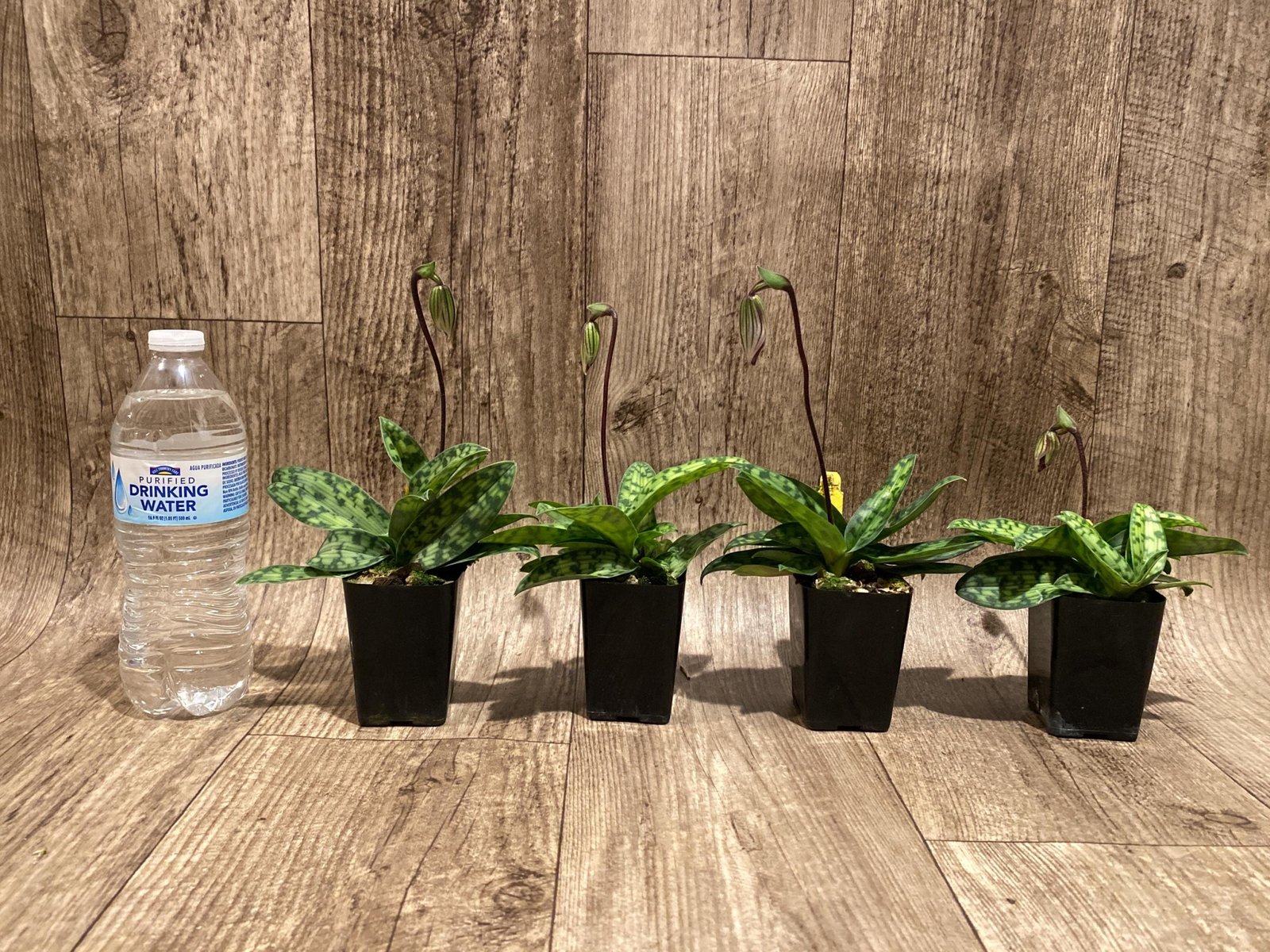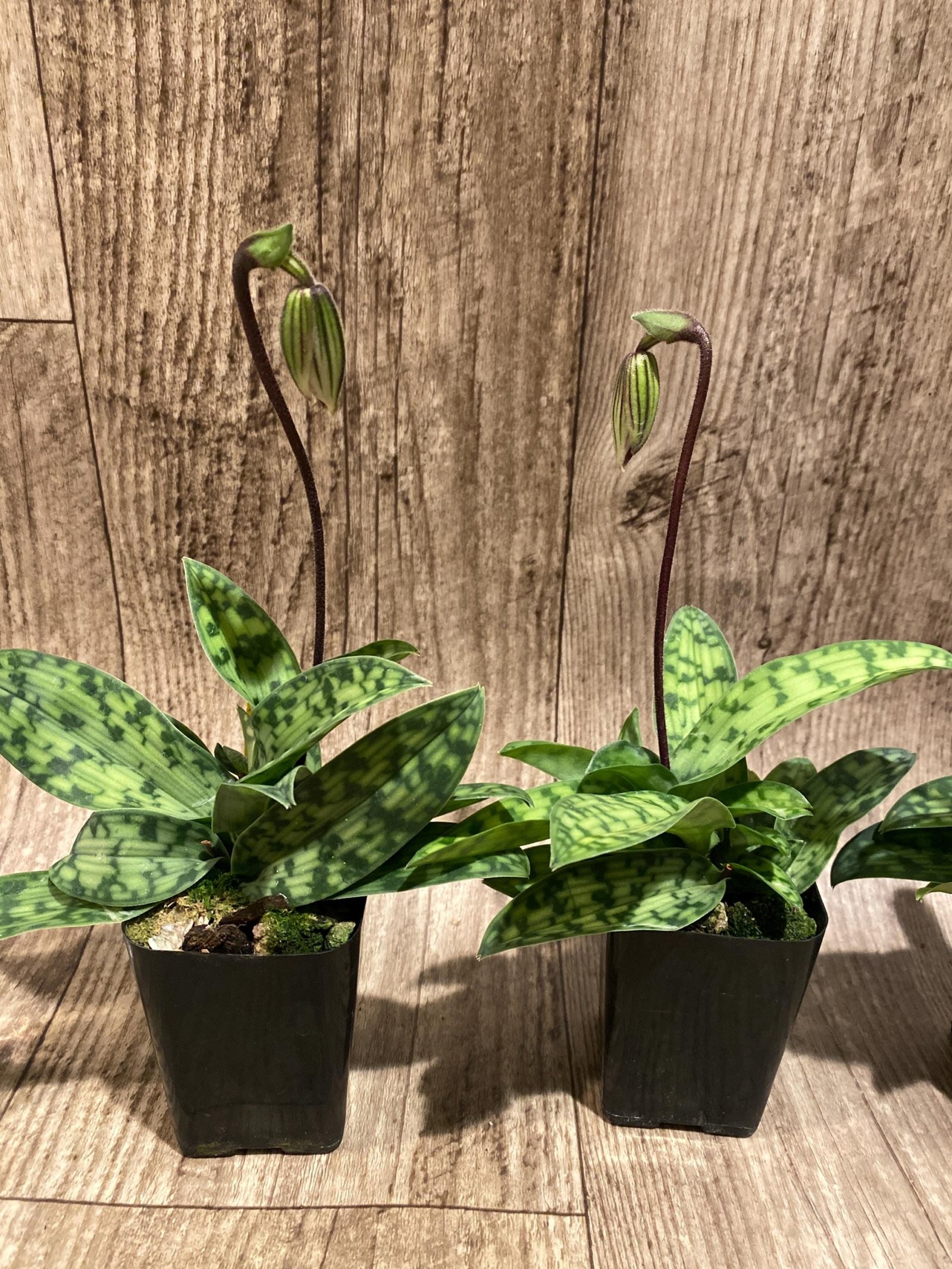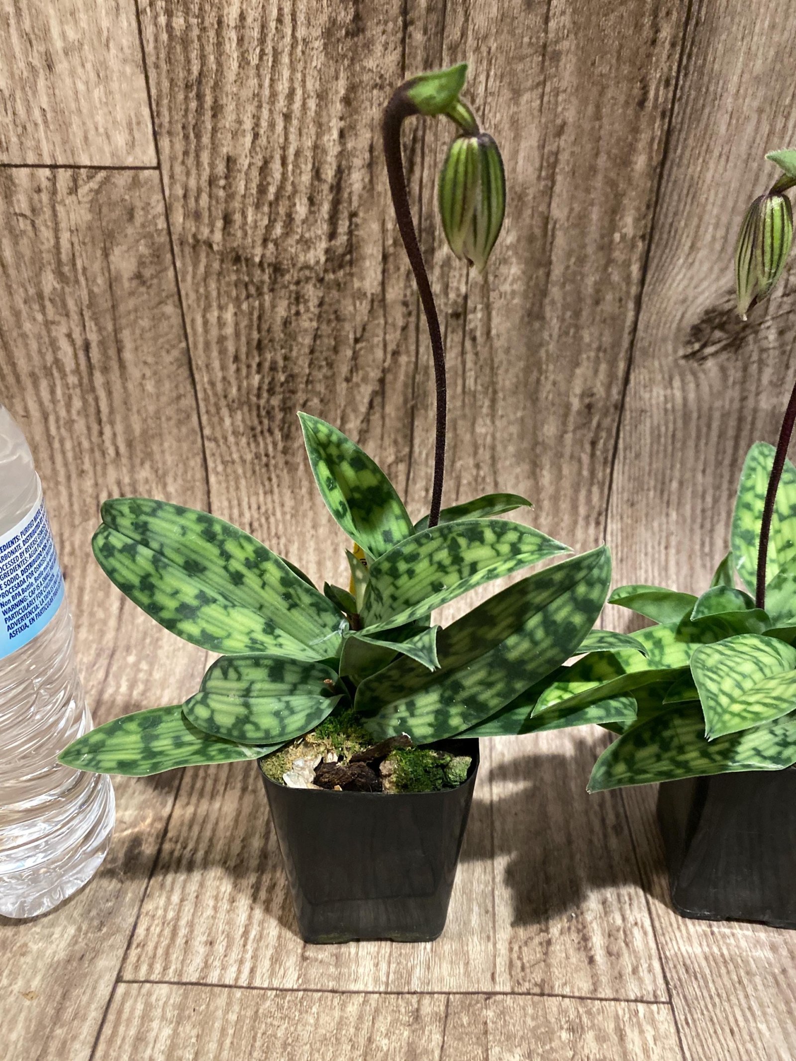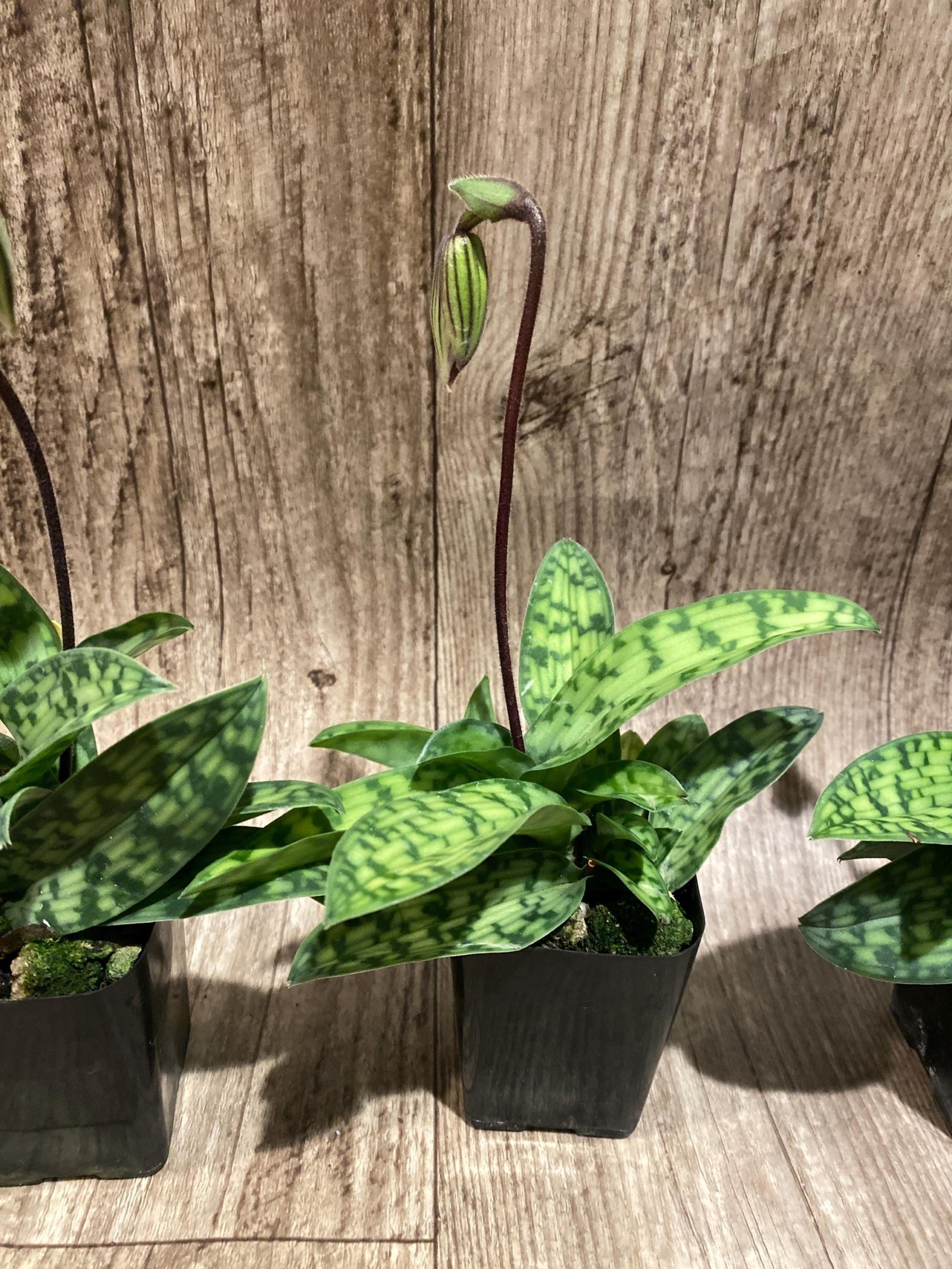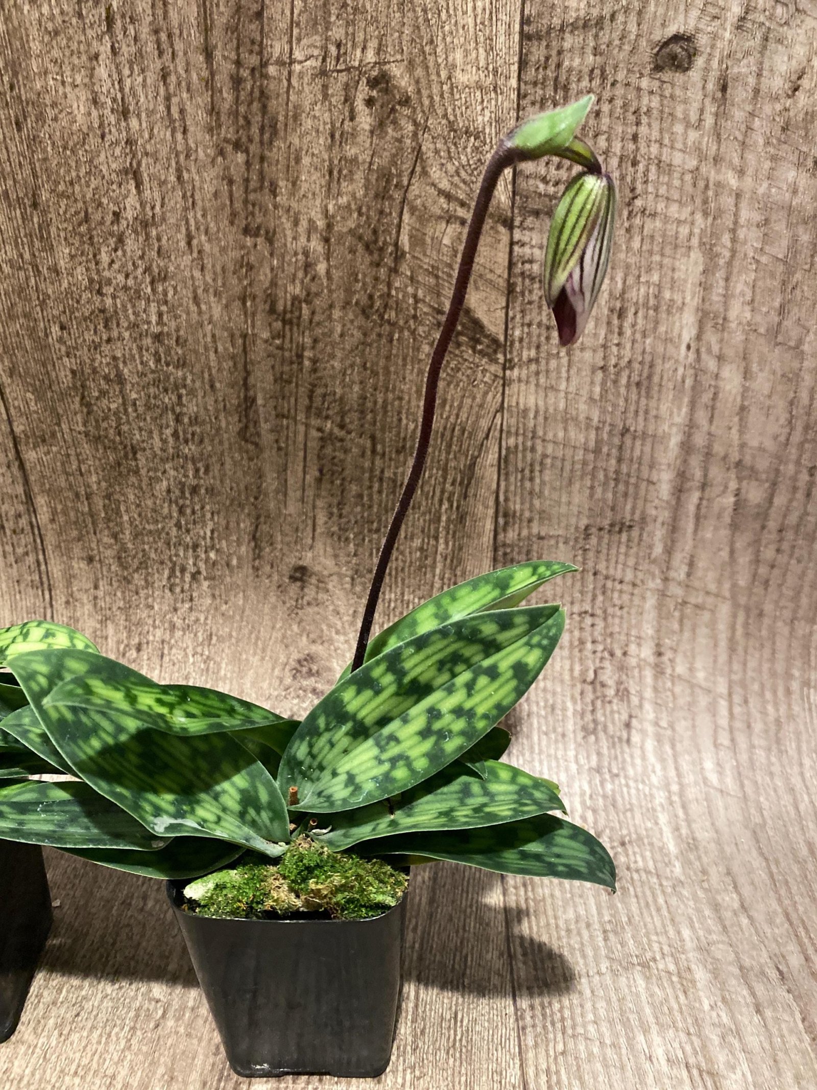 In Spike Paphiopedilum Barbato-Purpuratum (barbatum x purpuratum) (2″ pot)