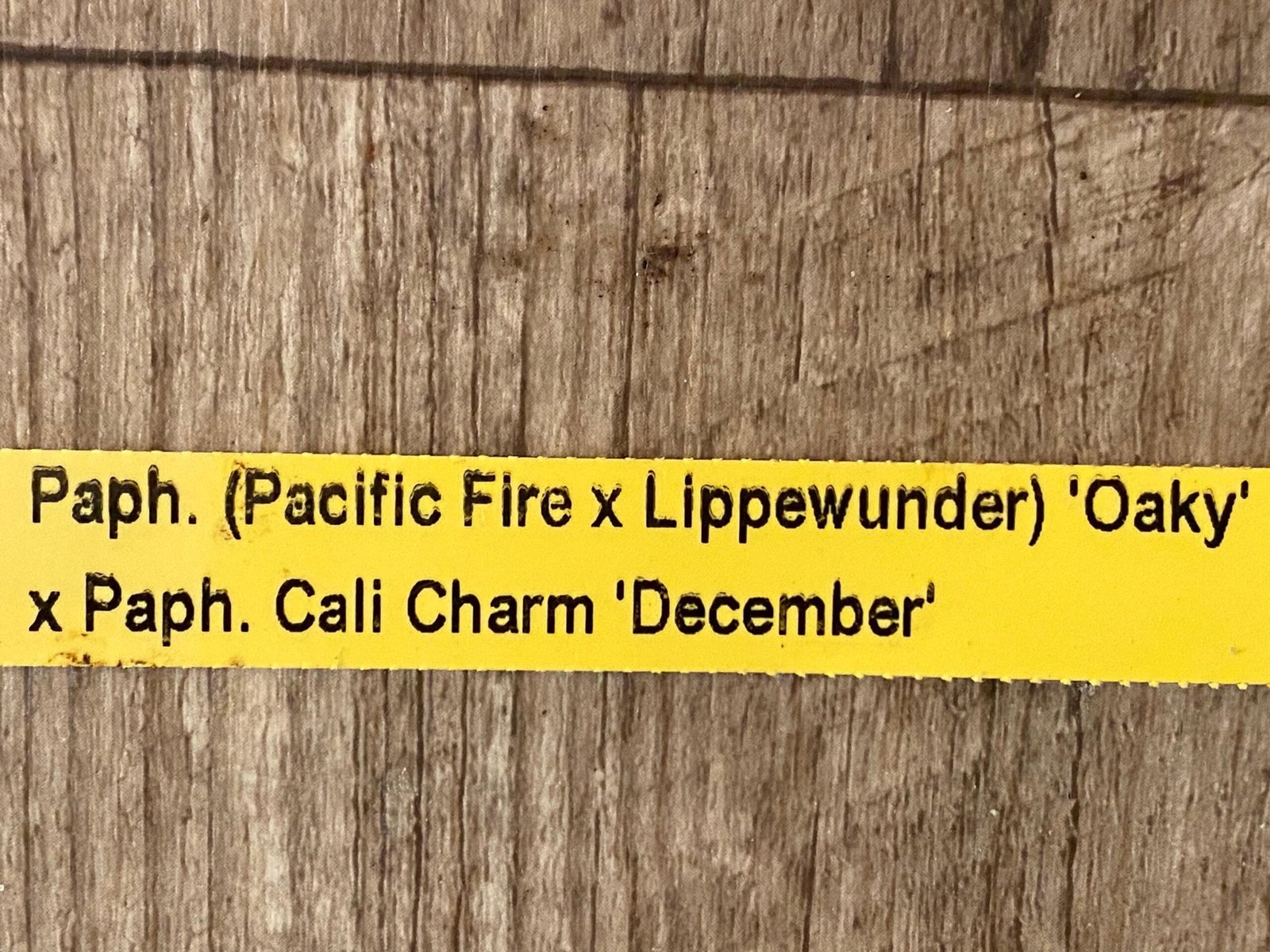 In Spike Paphiopedilum (Pacific Fire x Lippewunder Oaky x Paph. Cali Charm ‘December’ (3.5” pot)