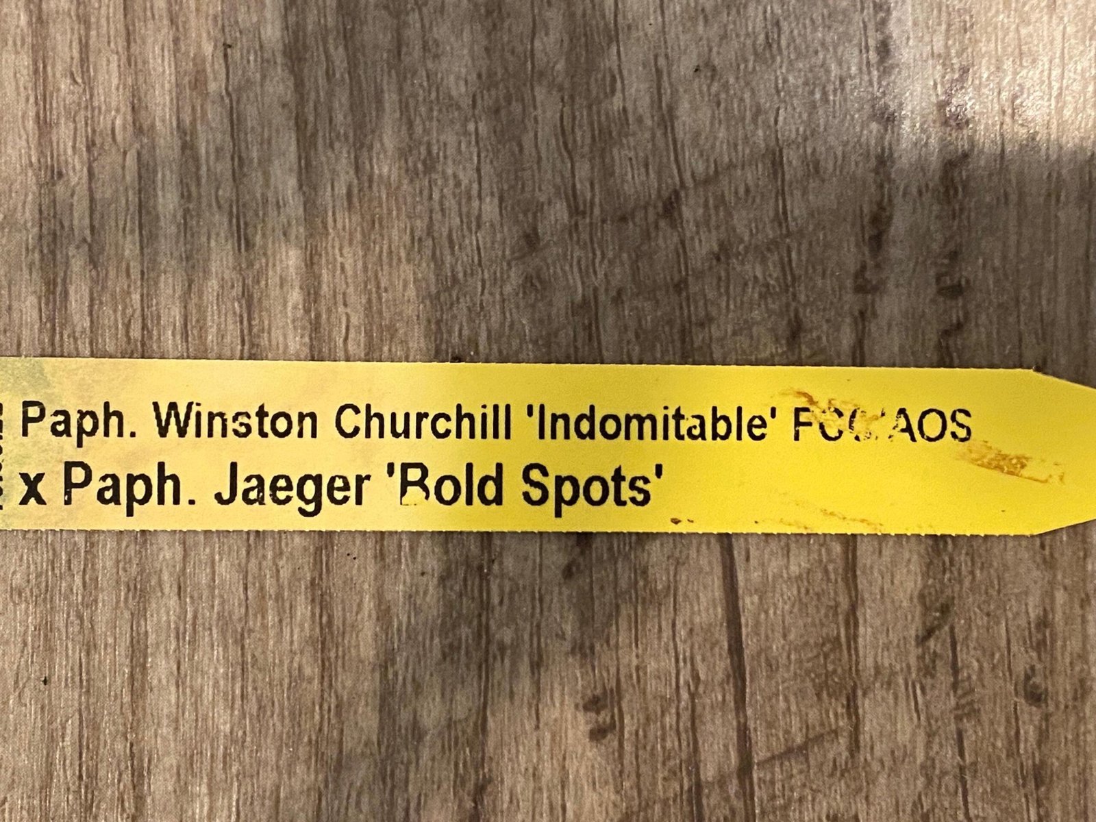 In Spike Paphiopedilum Winston Churchill ‘Indomitabie’ FCC/AOS x Paph. Jaeger ‘Bold Spots’’+ 6 New Growths (3.5’ pot)