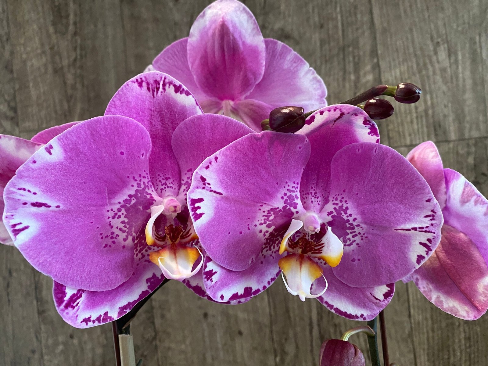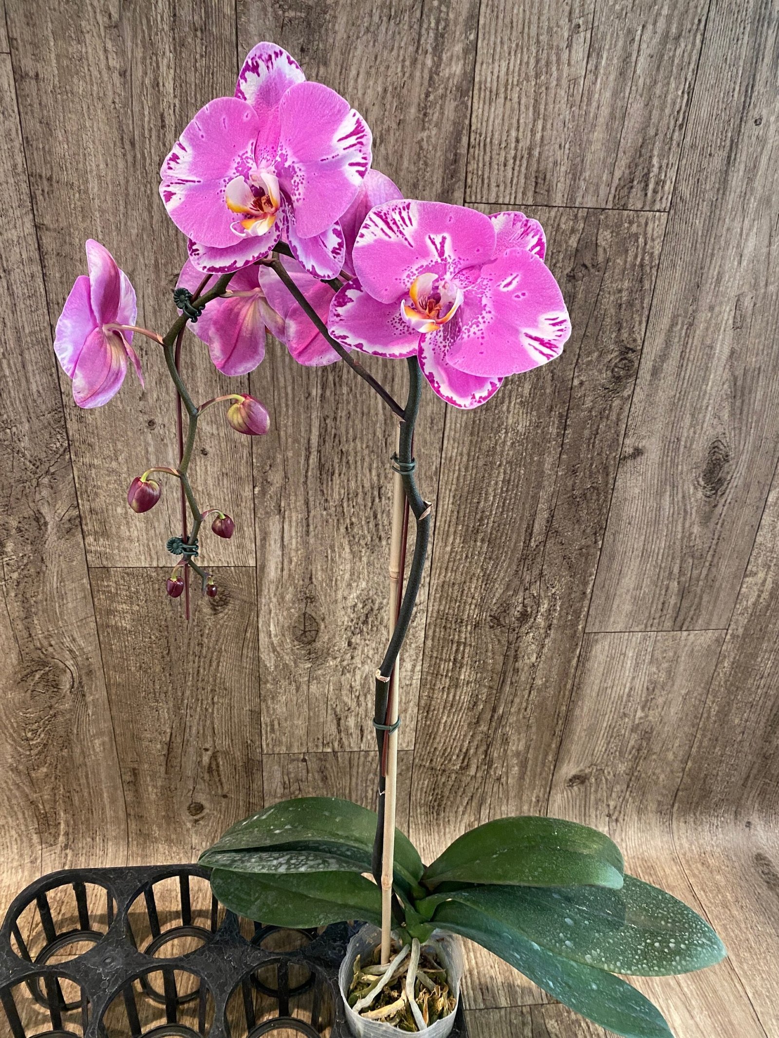 In Spike Phalaenopsis Large Dtps. OX King x Phal. Fuller’s Purple Queen XL Flowers (4.5″ Pot)