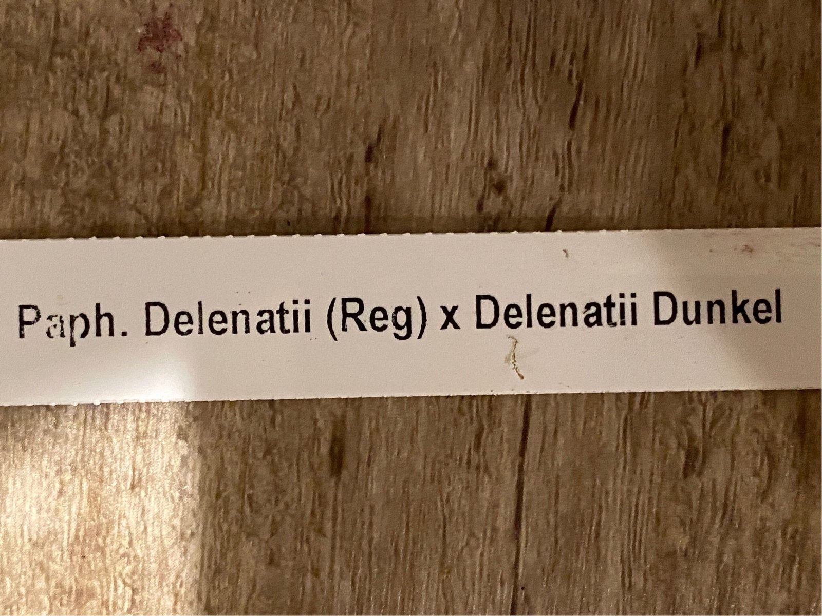 Paph. Delenatii (Reg.) x Delenatii Dunkel 3 Growths (3.5” pot)