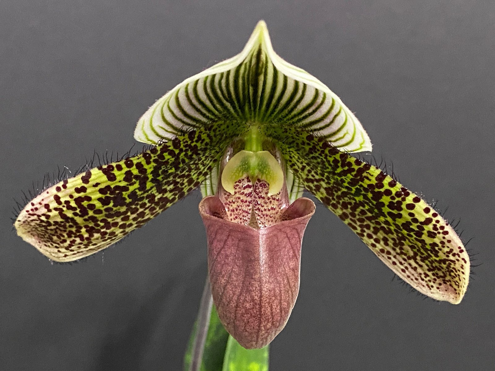 Paph. Delightfully Contrasting IN BLOOM (3.5″ pot)