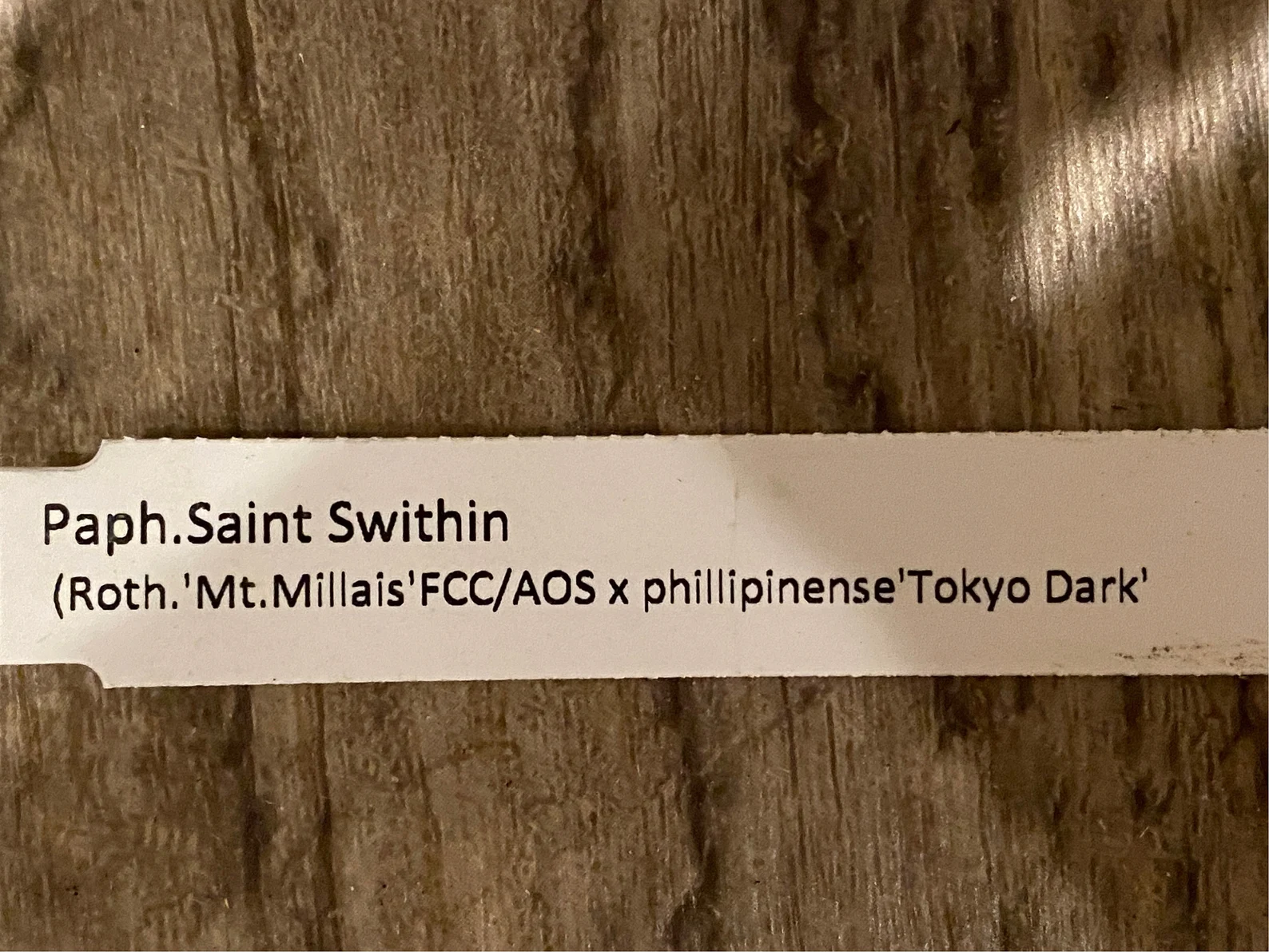 Paph. Saint Swithin (rothschildianum x philippinese) (3.5” pot)