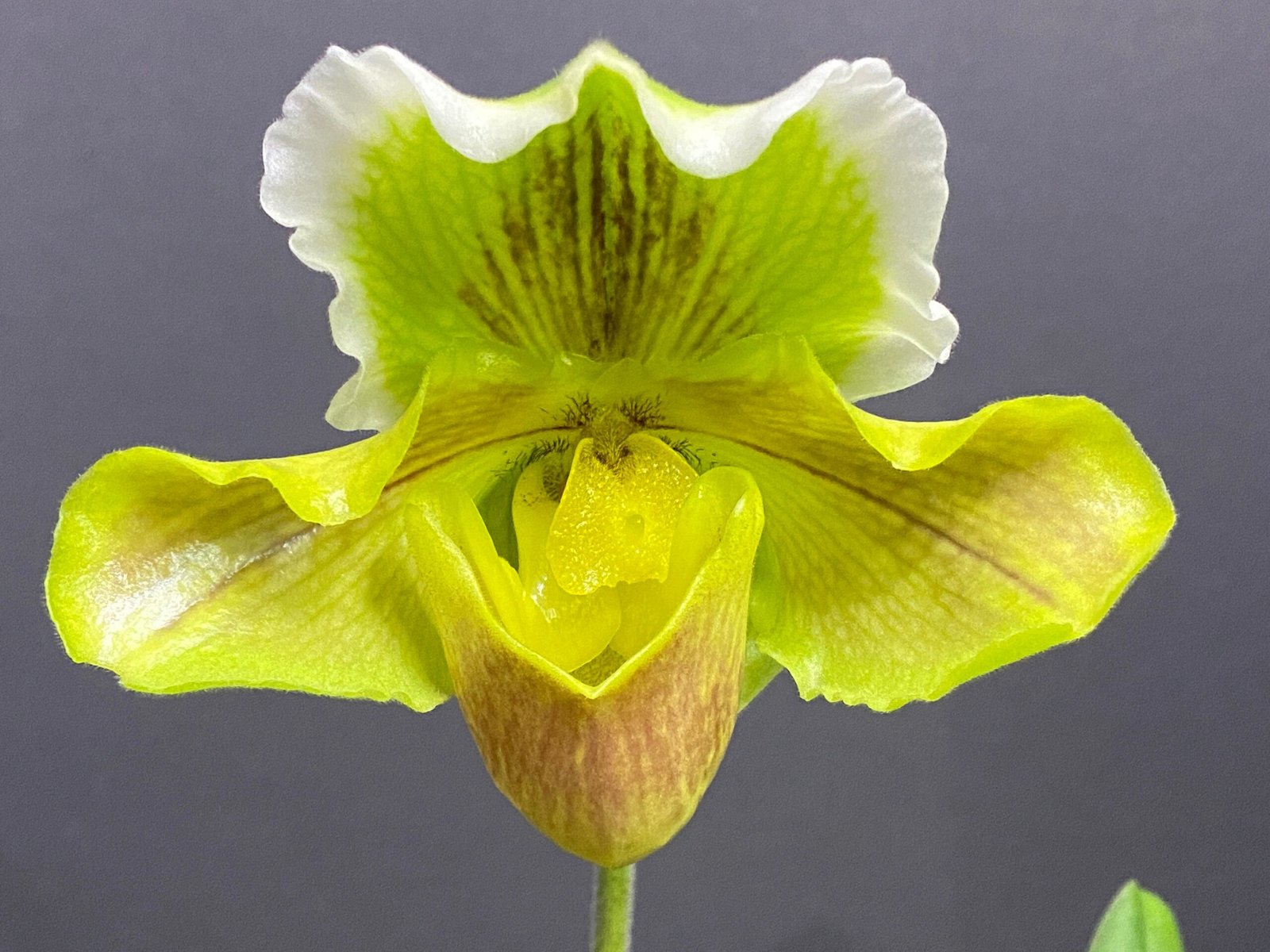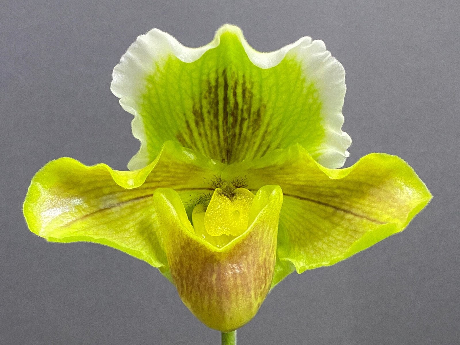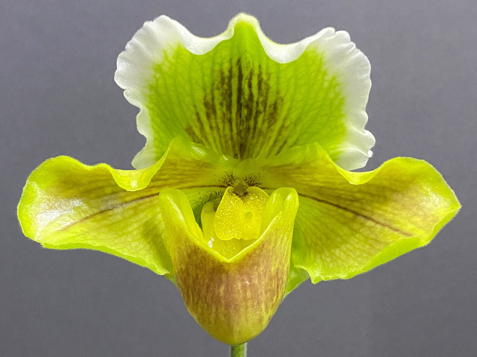 Paph. Sheldrake x Beverley Rhodes ‘Camira’ (3.5′ pot)