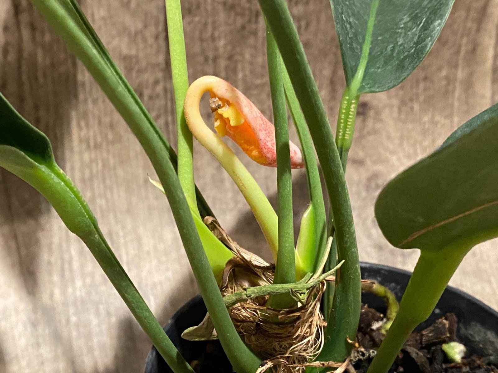 Rare – Anthurium scherzerianum (Cream with red dots) (4.5” pot)